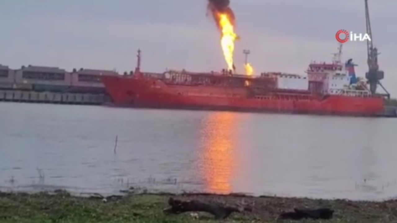 Romanya'nın Plauru köyü sakinleri, Rus saldırısı sonrası alev alan geminin patlama tehlikesi nedeniyle tahliye edildi.