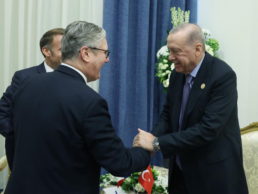 Erdoğan, Şarm eş-Şeyh temasları kapsamında Birleşik Arap Emirlikleri (BAE) Devlet Başkan Yardımcısı Şeyh Mansur bin Zayid Al Nahyan ve İngiltere Başbakanı Keir Starmer, Fransa Cumhurbaşkanı Emmanuel Macron ile ikili görüşme gerçekleştirmişti.
