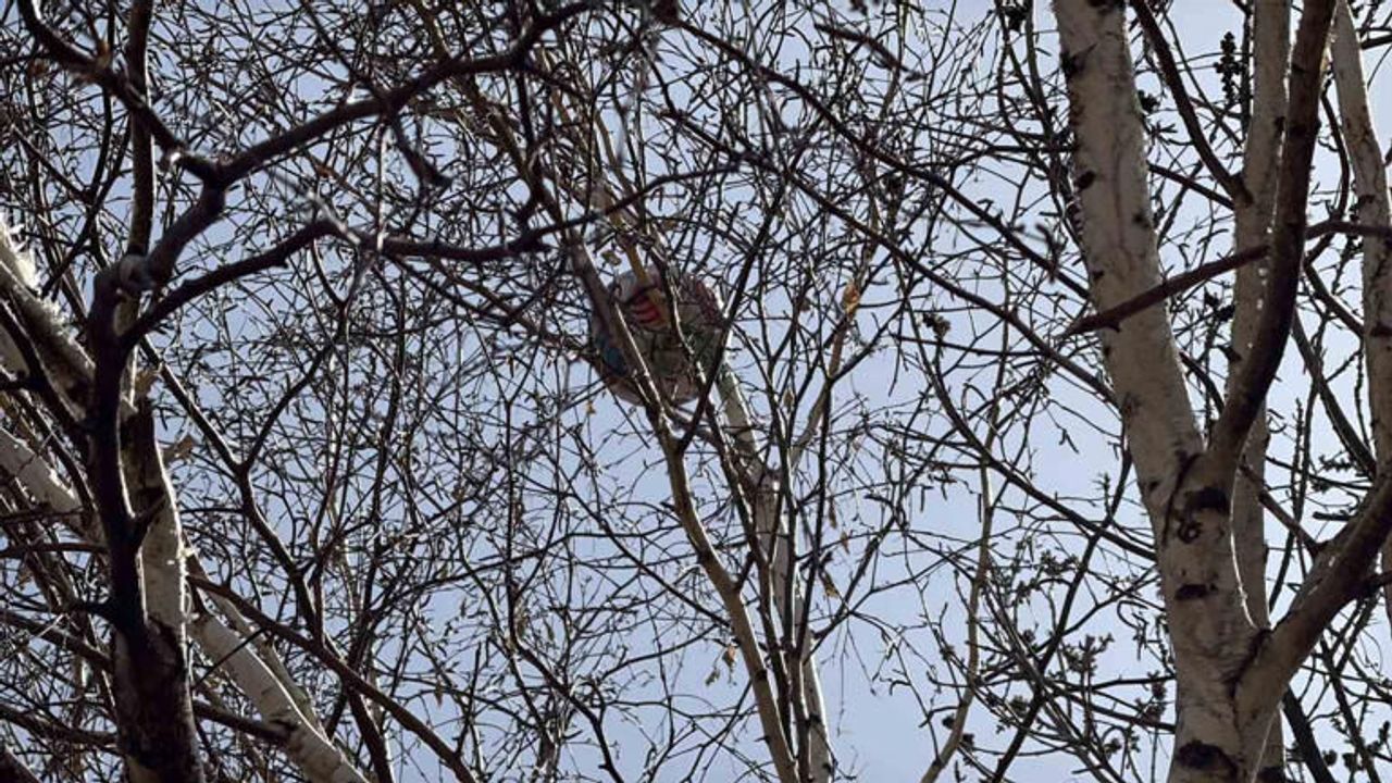 Parkta oynayan çocukların topu park içerisindeki bir ağacın dallarına takıldı.