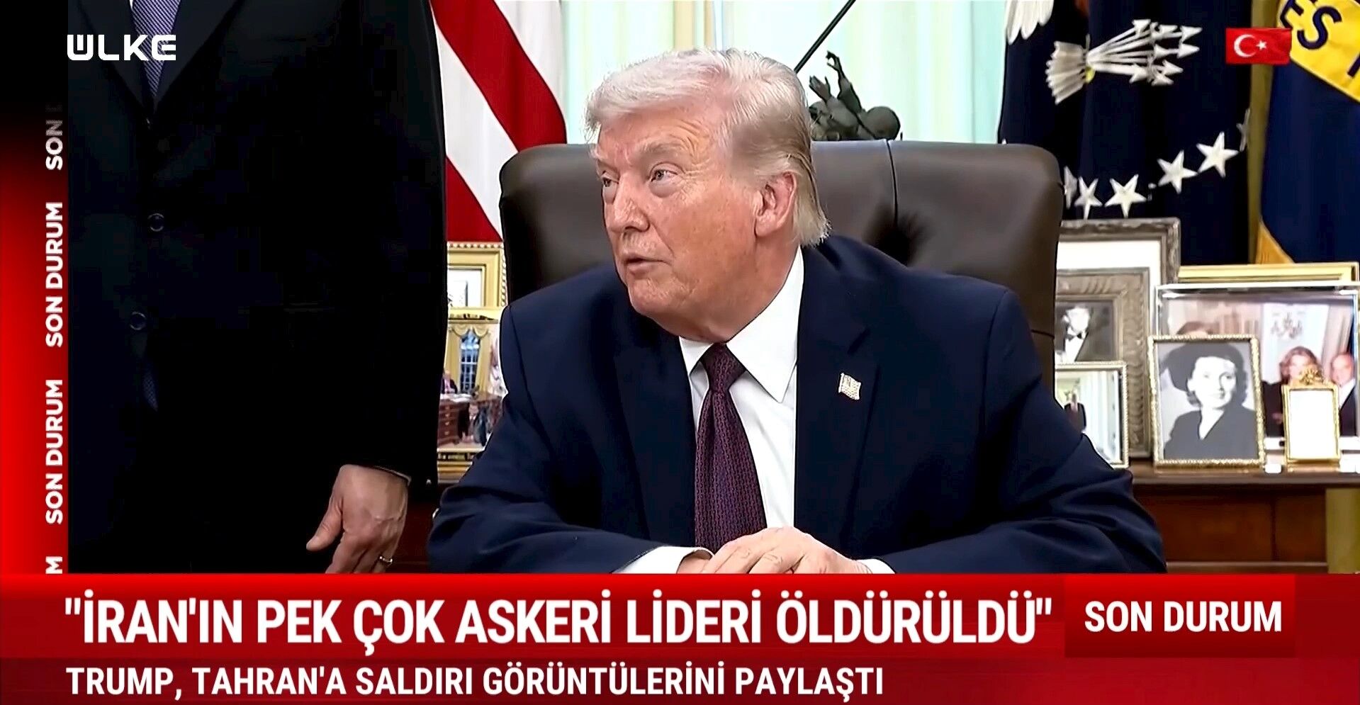ABD Başkanı, paylaşımın altına "İran’ın, kendilerini kötü ve basiretsizce yönetmiş olan pek çok askeri lideri, daha pek çok şeyle birlikte, Tahran’daki bu devasa saldırıyla tasfiye edildi!" diye yazdı.