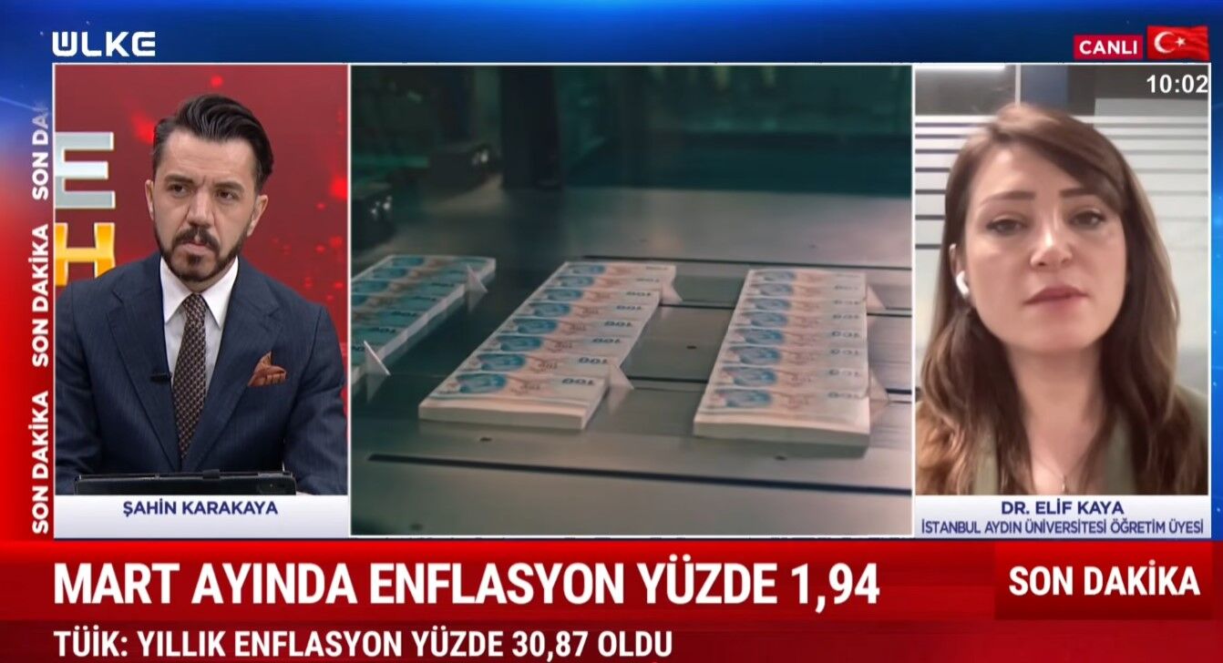 İstanbul Aydın Üniversitesi Öğretim Üyesi Doktor Elif Kaya, Ülke TV’de enflasyon rakamlarını yorumladı.