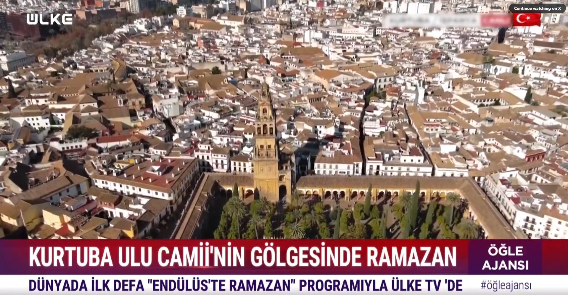 Ülke TV ekranlarında Dr. Erkan Aydın'ın sunumuyla "Endülüs'te Ramazan" programı Kurtuba Ulu Camii önünden yapılan yayınla dünyada bir ilki gerçekleştirdi.