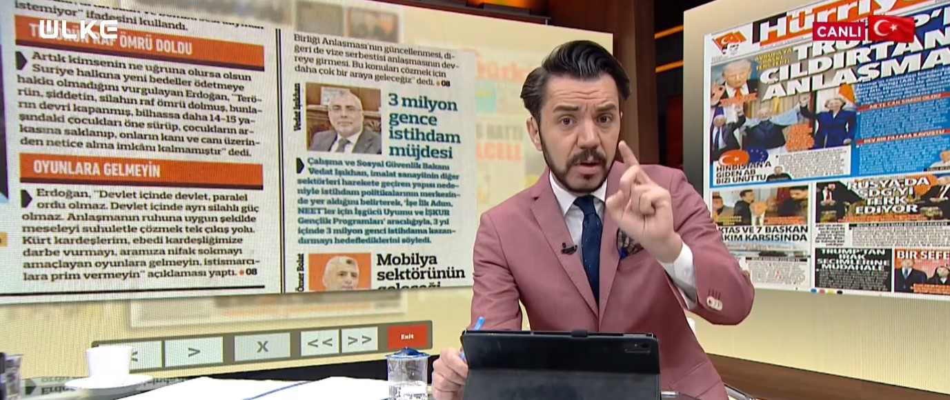 "Ülke'de Bu Sabah" programının sunucusu Şahin Karakaya, gurur veren projelerimizi öne çıkararak, yapılanlara çelme takmak isteyenlere, “Zekası 3 harfe bile sığmayacak olan adamlar var! Bunların ağzına kürekle vurmuşçasına cevap verelim” sözleri ile yanıt verdi.