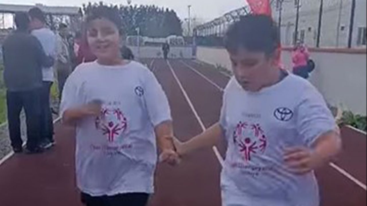 BÜYÜK YÜREĞİ ❣️#İstanbul Silivri'de düzenlenen okul koşu yarışmasına katılan özel eğitim öğrencisinin, geride kalan arkadaşının elinden tutup bitiş çizgisini birlikte geçmeleri yürekleri ısıttı 🥰 pic.twitter.com/JTn1VnFNE5